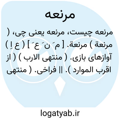 ( مرنعة ) مرنعة. [ م َ ن َ ع َ ] ( ع اِ ) آوازهای بازی. ( منتهی الارب ) ( از اقرب الموارد ). || فراخی. ( منتهی الارب ). سعت. ( اقرب الموارد ). || مرغزار. ( منتهی الارب ). روضه. ( اقرب الموارد ). || پاره ای از صید و طعام و شراب. ( منتهی الارب ) ( از اقرب الموارد ). || فراهم آمدنگاه از جهت خصومت و مانند آن. ( از منتهی الارب ) ( از اقرب الموارد ).