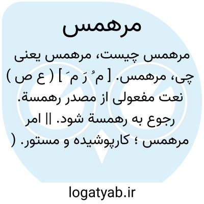 مرهمس. [ م ُ رَ م َ ] ( ع ص ) نعت مفعولی از مصدر رهمسة. رجوع به رهمسة شود. || امر مرهمس؛ کارپوشیده و مستور. ( منتهی الارب ) ( از اقرب الموارد ).
