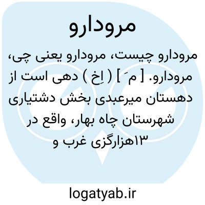 مرودارو. [ م َ ] ( اِخ ) دهی است از دهستان میرعبدی بخش دشتیاری شهرستان چاه بهار، واقع در 13هزارگزی غرب و دشتیاری و کنار راه مالرو دشتیاری به دج. آب آن از باران و محصولش ذرت و لبنیات است. ساکنین آن از طایفه سردار زائی هستند. ( از فرهنگ جغرافیایی ایران ج 8 ).