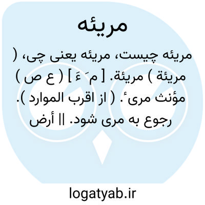 ( مریئة ) مریئة. [ م َ ءَ ] ( ع ص ) مؤنث مری ٔ. ( از اقرب الموارد ). رجوع به مری شود. || أرض مریئة؛ زمین خوش هوا. ( منتهی الارب ) ( از اقرب الموارد ).