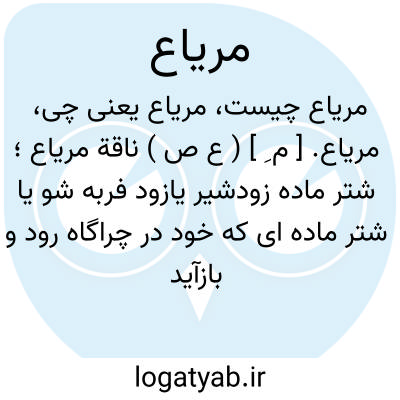 لغت نامه دهخدا مریاع. [ م ِ ] ( ع ص ) ناقة مریاع؛ شتر ماده زودشیر یازود فربه شو یا شتر ماده ای که خود در چراگاه رود و بازآید بدون راعی. ( منتهی الارب ) ( از اقرب الموارد ).