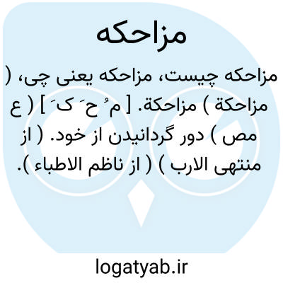 لغت نامه دهخدا ( مزاحکة ) مزاحکة. [ م ُ ح َ ک َ ] ( ع مص ) دور گردانیدن از خود. ( از منتهی الارب ) ( از ناظم الاطباء ).