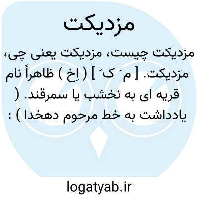 مزدیکت. [ م َ ک َ ] ( اِخ ) ظاهراً نام قریه ای به نخشب یا سمرقند. ( یادداشت به خط مرحوم دهخدا ):