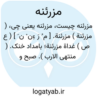 ( مزرئنة ) مزرئنة. [ م ُ رَ ءِن ْ ن َ ] ( ع ص ) غداة مزرئنة؛ بامداد خنک. ( منتهی الارب ). صبح و بامداد سرد. ( ناظم الاطباء ).