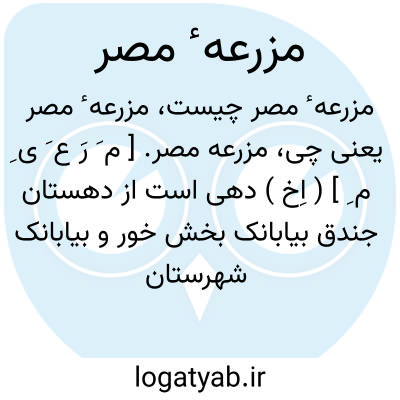 مزرعه مصر. [ م َ رَ ع َ ی ِ م ِ ] ( اِخ ) دهی است از دهستان جندق بیابانک بخش خور و بیابانک شهرستان نائین، در 45هزارگزی شمال غربی خور، در جلگه واقع و دارای 109 تن سکنه است. آبش از قنات محصولش غلات، ذرت، ارزن و صنایع دستی آن عبابافی و دارای معدن سرب می باشد. ( از فرهنگ جغرافیایی ایران ج 10 ).