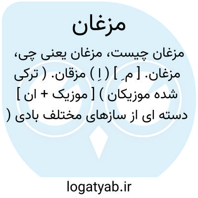 مزغان. [ م ِ ] ( اِ ) مزقان. ( ترکی شده موزیکان ) [ موزیک + ان ] دسته ای از سازهای مختلف بادی ( چون شیپور وغیره ) که با طبل و سنج در موزیک نظامی با هم نوازند. موزیک. یک دسته از سازهای مختلف موسیقی که با هم نوازند ومخصوص فوج نظامیان است. این لفظ محرف موزیک فرانسوی است که با الف و نون فارسی جمع بسته شده از این جهت به آن موزیکان هم گویند. ( فرهنگ نظام ). || گاه از باب ذکر کل و اراده جزء، بر یک ساز بادی نظیر شیپور نیز اطلاق شود.