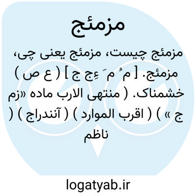 مزمئج. [ م ُ م َ ءِج ج ] ( ع ص ) خشمناک. ( منتهی الارب ماده «زم ج » ) ( اقرب الموارد ) ( آنندراج ) ( ناظم الاطباء ).