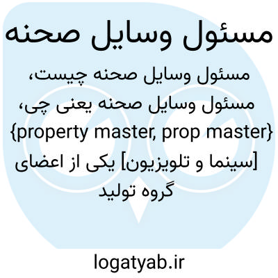 {property master, prop master} [سینما و تلویزیون] یکی از اعضای گروه تولید که ساخت و تهیۀ وسایل صحنه بر عهدۀ اوست و در حفظ تداوم حضور اشیا و وسایل صحنۀ فیلم با منشی صحنه همکاری می کند