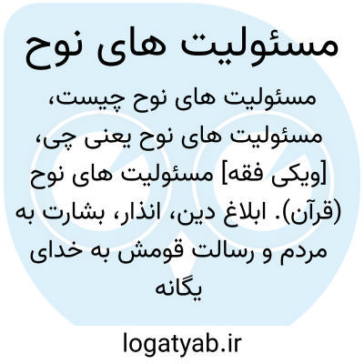 [ویکی فقه] مسئولیت های نوح (قرآن). ابلاغ دین، انذار، بشارت به مردم و رسالت قومش به خدای یگانه ازجمله مسئولیت های حضرت نوح علیه السلام بود.