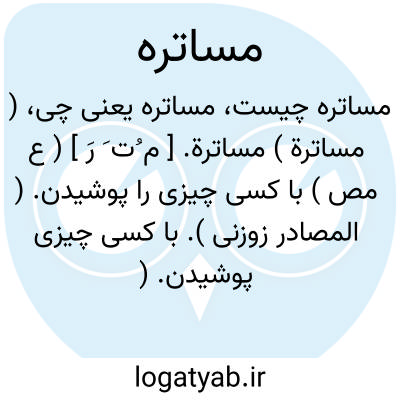 لغت نامه دهخدا ( مساترة ) مساترة. [ م ُت َ رَ ] ( ع مص ) با کسی چیزی را پوشیدن. ( المصادر زوزنی ). با کسی چیزی پوشیدن. ( تاج المصادر بیهقی ). || ( اِمص ) پوشیدگی و نهفتگی. ( ناظم الاطباء ).
