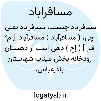 ( مسافرآباد ) مسافرآباد. [ م ُ ف ِ ] ( اِخ ) دهی است از دهستان رودخانه بخش میناب شهرستان بندرعباس. واقع در 100هزارگزی شمال میناب. آب آن از رودخانه و راه آن مالرو است. ( از فرهنگ جغرافیایی ایران ج 8 ).