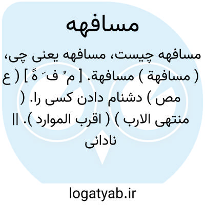 ( مسافهة ) مسافهة. [ م ُ ف َ هََ ] ( ع مص ) دشنام دادن کسی را. ( منتهی الارب ) ( اقرب الموارد ). || نادانی نمودن. ( منتهی الارب ). مجاهله. || نشستن نزدیک خم و دن و شراب خوردن ساعت بعد ساعت. || اسراف نمودن درخوردن شراب و بدون اندازه خوردن آن. ( منتهی الارب ) ( اقرب الموارد ). || لازم گرفتن ناقه راه را به سیر سخت. ( منتهی الارب ). راندن. ( اقرب الموارد ).