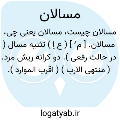 مسالان. [ م ُ ] ( ع اِ ) تثنیه مسال ( در حالت رفعی ). دو کرانه ریش مرد. ( منتهی الارب ) ( اقرب الموارد ). و رجوع به مسال شود.