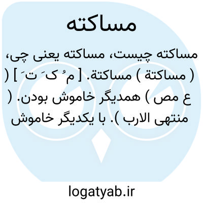 ( مساکتة ) مساکتة. [ م ُ ک َ ت َ ] ( ع مص ) همدیگر خاموش بودن. ( منتهی الارب ). با یکدیگر خاموش بودن. ( تاج المصادر بیهقی ). || نبرد کردن با کسی در خاموشی. ( منتهی الارب ). مبارزه کردن با کسی در سکوت و بر او غلبه کردن. ( اقرب الموارد ).