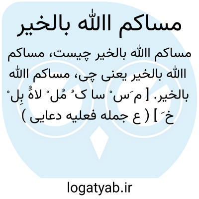 مساکم اﷲ بالخیر. [ م َس ْ سا ک ُ مُل ْ لاهَُ بِل ْ خ َ ] ( ع جمله فعلیه دعایی ) شام باخیر داراد خدای شما را. شب بخیر. عصربخیر. مسأکم بالخیر.