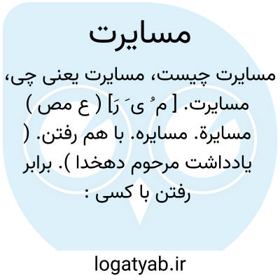 مسایرة. [ م ُ ی َ رَ ] ( ع مص ) مسایره. مسایرت. برابر رفتن با کسی و نبرد کردن با کسی در رفتن. ( منتهی الارب ). با کسی رفتن. ( المصادر زوزنی ) ( تاج المصادر بیهقی ). باهم رفتن. و رجوع به مسایرت شود.