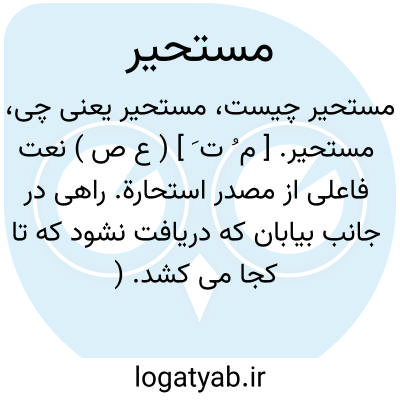 مستحیر. [ م ُ ت َ ] ( ع ص ) نعت فاعلی از مصدر استحارة. راهی در جانب بیابان که دریافت نشود که تا کجا می کشد. ( منتهی الارب ) ( اقرب الموارد ). || ابر گران و گرد برگشته بی باد. ( منتهی الارب ). ابر سنگین و سرگردان که بادی ندارد تا آن را براند. ( اقرب الموارد ). رجوع به استحارة شود.