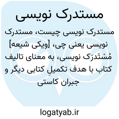 در لغتنامه دهخدا برای این واژه معانی ای چون جبران شده، تدارک مافات، رفعِ توهم شده، ذیلی بر کتاب، مقاله یا رساله با شرح برخی نکاتِ آن، ذکر شده است. تکمله نیز غالبا مترادف با مستدرک به کار می رود و به معنای تکمیل کننده است.
