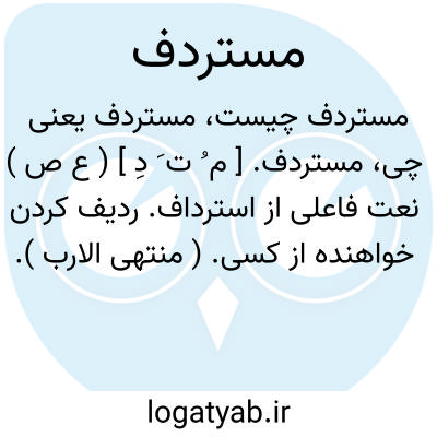 مستردف. [ م ُ ت َ دِ ] ( ع ص ) نعت فاعلی از استرداف. ردیف کردن خواهنده از کسی. ( منتهی الارب ). || خواهنده از کسی که به دنبال او رود. ( اقرب الموارد ). رجوع به استرداف شود.