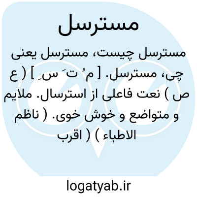 مسترسل. [ م ُ ت َ س ِ ] ( ع ص ) نعت فاعلی از استرسال. ملایم و متواضع و خوش خوی. ( ناظم الاطباء ) ( اقرب الموارد ). || شعر مسترسل؛ موی فروهشته. ( دهار ) ( منتهی الارب ). موی فروهشته و راست افتاده و آویخته. ( ناظم الاطباء ) ( اقرب الموارد ). رجوع به استرسال شود.