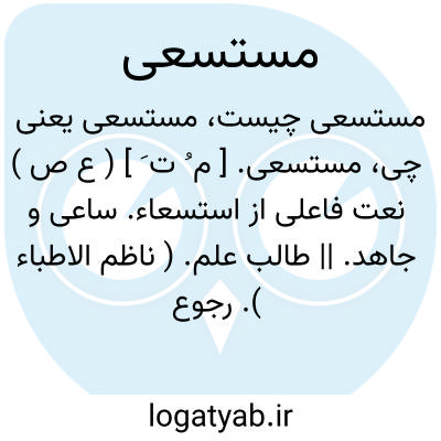 لغت نامه دهخدا مستسعی. [ م ُ ت َ ] ( ع ص ) نعت فاعلی از استسعاء. ساعی و جاهد. || طالب علم. ( ناظم الاطباء ). رجوع به استسعاء شود.