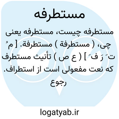 ( مستطرفة ) مستطرفة. [ م ُ ت َ رَ ف َ ] ( ع ص ) تأنیث مستطرف که نعت مفعولی است از استطراف. رجوع به مستطرف و استطراف شود. || آنکه خانه زاد نباشد و از نتایج صاحب خود نبود. ( منتهی الارب ).