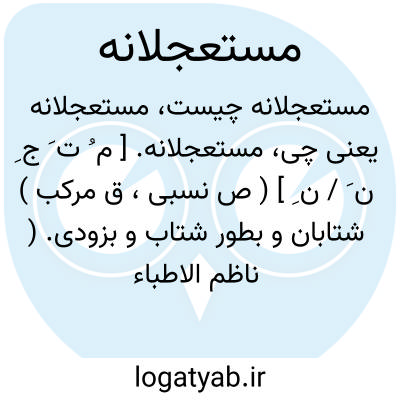 مستعجلانه. [ م ُ ت َ ج ِ ن َ / ن ِ ] ( ص نسبی، ق مرکب ) شتابان و بطور شتاب و بزودی. ( ناظم الاطباء ). مستعجلاً. رجوع به مستعجلاً و مستعجل شود.