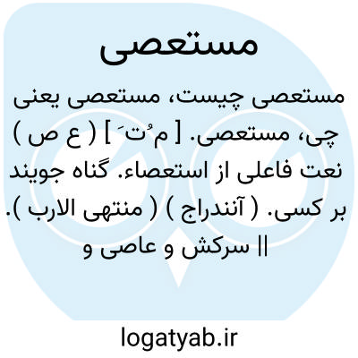 مستعصی. [ م ُت َ ] ( ع ص ) نعت فاعلی از استعصاء. گناه جویند بر کسی. ( آنندراج ) ( منتهی الارب ). || سرکش و عاصی و گناهکار. ( ناظم الاطباء ). رجوع به استعصاء شود.