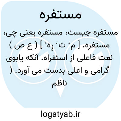مستفره. [ م ُ ت َ رِه ْ ] ( ع ص ) نعت فاعلی از استفراه. آنکه یابوی گرامی و اعلی بدست می آورد. ( ناظم الاطباء ) ( از اقرب الموارد ). رجوع به استفراه شود.