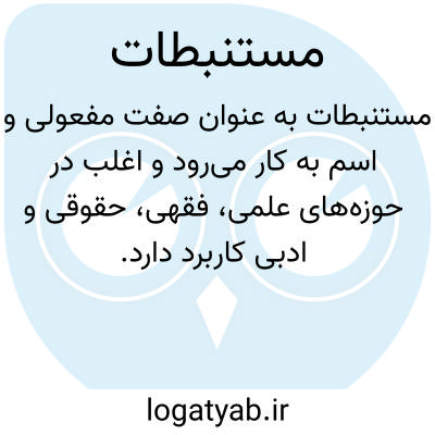 از نظر دستوری، مستنبطات به عنوان صفت مفعولی و اسم به کار می‌رود و اغلب در حوزه‌های علمی، فقهی، حقوقی و ادبی کاربرد دارد. در این زمینه‌ها، اشاره به یافته‌ها و احکامی دارد که به صورت مستقیم در نص اصلی ذکر نشده، بلکه با بهره‌گیری از اصول، قواعد و روش‌های استدلالیِ مشخص، از دلِ آن استخراج می‌گردند. بنابراین، این واژه بار معناییِ فرآیندِ عمیقِ اندیشه و استخراجِ معانیِ نهفته را در خود حمل می‌کند.