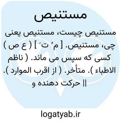 مستنیص. [ م ُ ت َ ] ( ع ص ) کسی که سپس می ماند. ( ناظم الاطباء ). متأخر. ( از اقرب الموارد ). || حرکت دهنده و سبک یابنده چیزی را. ( از اقرب الموارد ). و رجوع به استناصة شود.