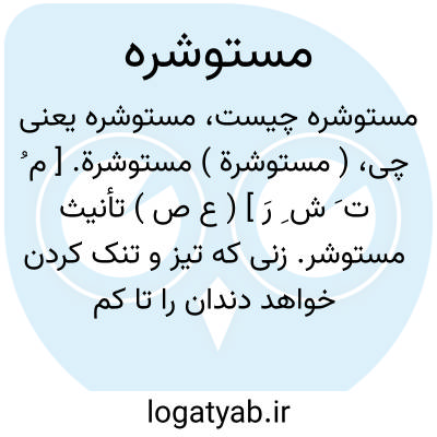 لغت نامه دهخدا ( مستوشرة ) مستوشرة. [ م ُ ت َ ش ِ رَ ] ( ع ص ) تأنیث مستوشر. زنی که تیز و تنک کردن خواهد دندان را تا کم سن نماید. ( منتهی الارب ) ( از اقرب الموارد ). و رجوع به استئشار شود.