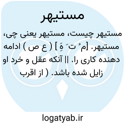 مستیهر. [م ُ ت َ هَِ ] ( ع ص ) ادامه دهنده کاری را. || آنکه عقل و خرد او زایل شده باشد. ( از اقرب الموارد ). || یقین کننده. مستوهر. ( از اقرب الموارد ) ( از منتهی الارب ). || تبدیل کننده و عوض کننده. ( از اقرب الموارد ). و رجوع به استیهار شود.