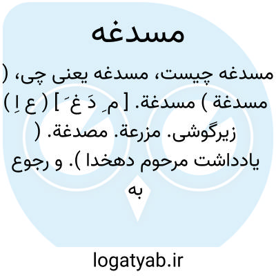 لغت نامه دهخدا ( مسدغة ) مسدغة. [ م ِ دَ غ َ ] ( ع اِ ) زیرگوشی. مزرعة. مصدغة. ( یادداشت مرحوم دهخدا ). و رجوع به مصدغة شود.