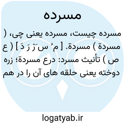 ( مسردة ) مسردة. [ م ُ س َرْ رَ دَ ] ( ع ص ) تأنیث مسرد: درع مسردة؛ زره دوخته یعنی حلقه های آن را در هم انداخته. ( ناظم الاطباء ).
