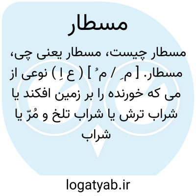 مسطار. [ م ِ / م ُ ] ( ع اِ ) نوعی از می که خورنده را بر زمین افکند یا شراب ترش یا شراب تلخ و مُرّ یا شراب نوساخته. ( از منتهی الارب ) ( از اقرب الموارد ). شراب به دست افشرده زود مست کننده. ( الفاظ الادویه ). خمر نارسیده.( فهرست مخزن الادویه ). شرابی که شش ماه بر آن نگذشته باشد یا شراب ترش شده. ( از بحر الجواهر ). نوعی از شراب که به ترشی زند. ( صحاح ). شرابی که در وی ترشی باشد. ( دهار ). برخی خمر ترش را گویند و بعضی گفته اند خمر تازه که طعم او متغیر شده باشد، و گویند که لغت رومی است و در لغت اهل شام متداول شده است و استعمال او در اشعار شعرای آن نواحی نیامده است، و گویند به لغت اهل شام خمری است که نو ساخته باشند از انگوری که بیشتر از همه برسد، و گویند به فارسی او را مشت افشار گویند. ( از تذکره ضریر انطاکی ). خمر حامض. مسطارة. مصطار. || غبار بلندرفته. ( منتهی الارب ).غبار که به آسمان برخاسته باشد. ( از اقرب الموارد ). || معرب از مست کار یا مشت افشار. ( بحر الجواهر ). مأخوذ از کلمه مست فارسی یا موستوم لاتینی. ( یادداشت مرحوم دهخدا ).