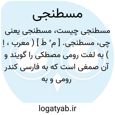 مسطنجی. [ م ُ طَ ] ( معرب، اِ ) به لغت رومی مصطکی را گویند و آن صمغی است که به فارسی کندر رومی و به سریانی کیا خوانند. ( برهان ). مصطکی. ( فهرست مخزن الادویه ).