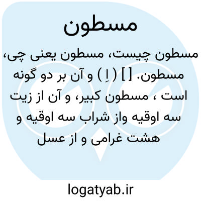 مسطون. [ ] ( اِ ) و آن بر دو گونه است، مسطون کبیر، و آن از زیت سه اوقیه واز شراب سه اوقیه و هشت غرامی و از عسل چهار اوقیه و نیم است و مسطون صغیر و آن از زیت شش درخمی و از شراب بیست غرامی و از عسل نه درخمی باشد. ( بحر الجواهر ).