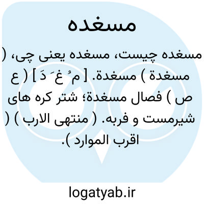 ( مسغدة ) مسغدة. [ م ُ غ َ دَ ] ( ع ص ) فصال مسغدة؛ شتر کره های شیرمست و فربه. ( منتهی الارب ) ( اقرب الموارد ). ساغدة. و رجوع به ساغدة شود.