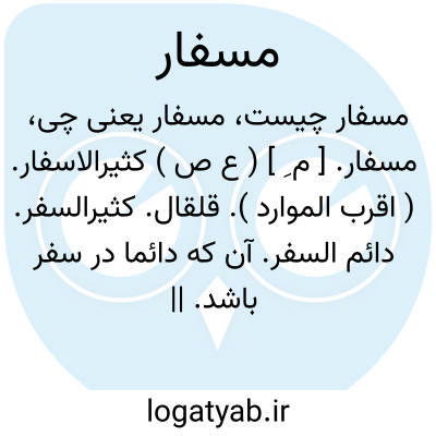مسفار. [ م ِ ] ( ع ص ) کثیرالاسفار. ( اقرب الموارد ). قلقال. کثیرالسفر. دائم السفر. آن که دائما در سفر باشد. || شترماده قوی و توانا. ( از اقرب الموارد ).