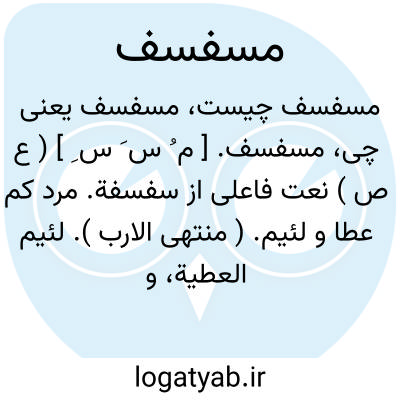 مسفسف. [ م ُ س َ س ِ ] ( ع ص ) نعت فاعلی از سفسفة. مرد کم عطا و لئیم. ( منتهی الارب ). لئیم العطیة، و برخی آن را لئیم الطبیعة نوشته اند. ( از اقرب الموارد ). و رجوع به سفسفة شود.