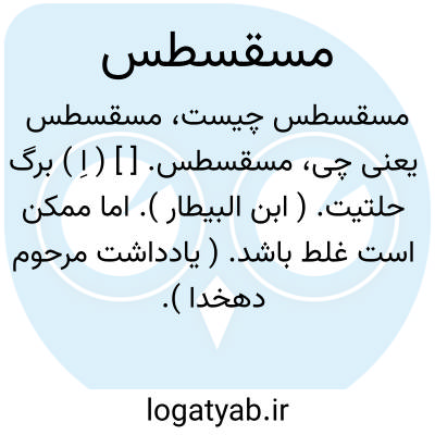 لغت نامه دهخدا مسقسطس. [ ] ( اِ ) برگ حلتیت. ( ابن البیطار ). اما ممکن است غلط باشد. ( یادداشت مرحوم دهخدا ).