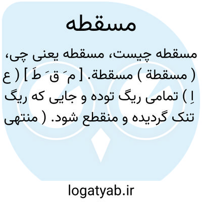 ( مسقطة ) مسقطة. [ م َ ق َ طَ ] ( ع اِ ) تمامی ریگ توده و جایی که ریگ تنک گردیده و منقطع شود. ( منتهی الارب ). || سبب افتادن و سقوط کردن: هذا مسقطة له من أعین الناس؛ این است سبب افتادن وی از چشم مردم. ( از منتهی الارب ) ( از اقرب الموارد ).
