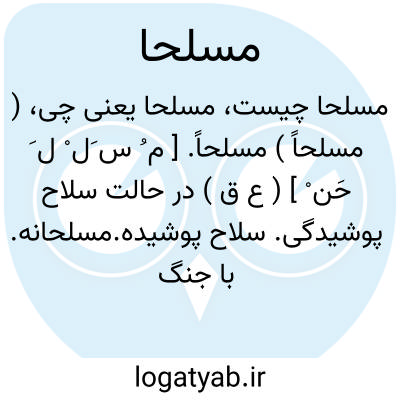 ( مسلحاً ) مسلحاً. [ م ُ س َل ْ ل َ حَن ْ ] ( ع ق ) در حالت سلاح پوشیدگی. سلاح پوشیده.مسلحانه. با جنگ افزارها. ملبس به لباس و آلات جنگ.