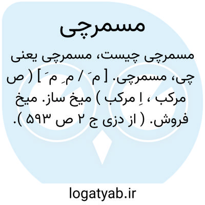 مسمرچی. [ م َ / م ِ م َ ] ( ص مرکب، اِ مرکب ) میخ ساز. میخ فروش. ( از دزی ج 2 ص 593 ).
