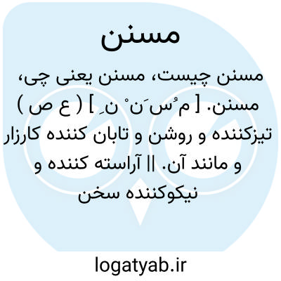 مسنن. [ م ُس َن ْ ن ِ ] ( ع ص ) تیزکننده و روشن و تابان کننده کارزار و مانند آن. || آراسته کننده و نیکوکننده سخن را. || راست کننده نیزه را بسوی کسی. ( از منتهی الارب ). || دندانپزشک. دندانساز. || سنت گذار. ( یادداشت مرحوم دهخدا ).