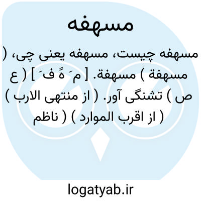 ( مسهفة ) مسهفة. [ م َ هََ ف َ ] ( ع ص ) تشنگی آور. ( از منتهی الارب ) ( از اقرب الموارد ) ( ناظم الاطباء ): طعام مسهفة؛ طعامی که تشنگی آرد و آب بسیار خوراند. ( منتهی الارب ) ( از اقرب الموارد ) ( ناظم الاطباء ).