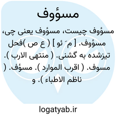 مسؤوف. [ م َ ئو ] ( ع ص )فحل تیزشده به گشنی. ( منتهی الارب ). مسوف. ( اقرب الموارد ). مسؤف. ( ناظم الاطباء ). و رجوع به مسوف شود.