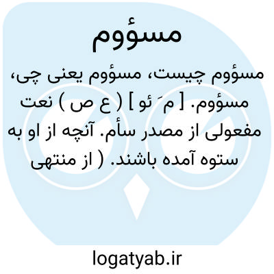 لغت نامه دهخدا مسؤوم. [ م َ ئو ] ( ع ص ) نعت مفعولی از مصدر سأم. آنچه از او به ستوه آمده باشند. ( از منتهی الارب ). آنچه از او بیزار شده باشند. و رجوع به سأم و سآمة شود.