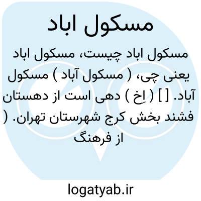 ( مسکول آباد ) مسکول آباد. [ ] ( اِخ ) دهی است از دهستان فشند بخش کرج شهرستان تهران. ( از فرهنگ جغرافیایی ایران ج 1 ).
